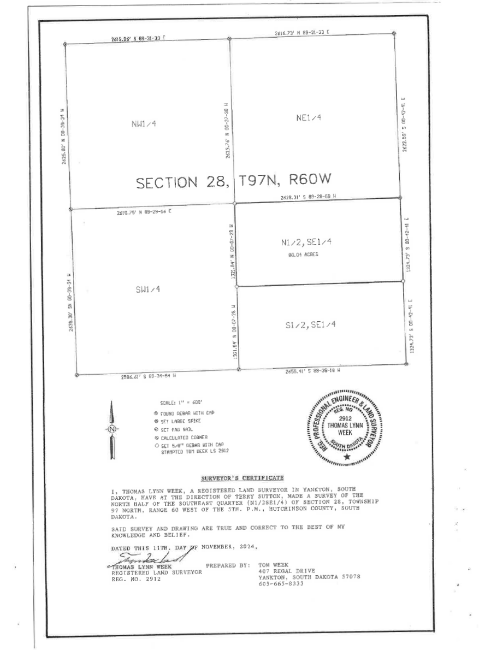 LEGAL DESC.: The N. ½ of the SE ¼ of Sec. 28., T. 97N., R. 60W., (Fair Township), Hutchinson County, SD