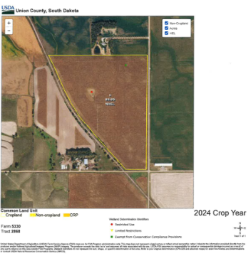 AUCTIONEERS NOTE: This auction presents an opportunity to purchase a parcel of land with a high percentage tillable and some potential hunting opportunities. This property has been in the Hofman family and has not been available for purchase for several decades, thus this auction presents what might be the opportunity of a lifetime to purchase this desirable parcel of Union County, SD land.